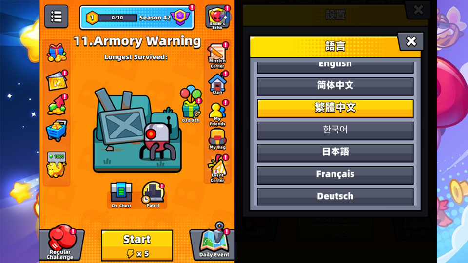 Survivor.io 支持多國語言切換〈繁/简中文、English、日/韩〉 登入送全身S紅裝+神器核心,零課也能爽感拉滿!